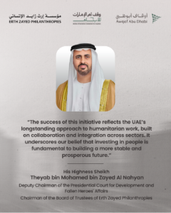 His Highness added: “The success of this initiative reflects the UAE’s longstanding approach to humanitarian work, built on collaboration and integration across sectors. It underscores our belief that investing in people is fundamental to building a more stable and prosperous future. We will continue to advance impactful initiatives that enhance quality of life and further strengthen endowment as an effective development tool contributing to a more cohesive and sustainable society.”